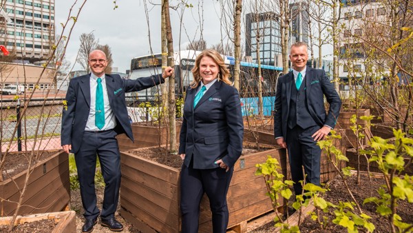 De samenwerking werd vandaag officieel onderstreept door drie medewerkers van Arriva in het BoskDok, de kraamkamer van de bomen van Bosk, een van de grote trekkers van Arcadia.